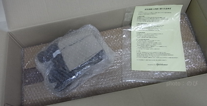 蓋を開けると 取扱いの注意点の用紙と、小物。
