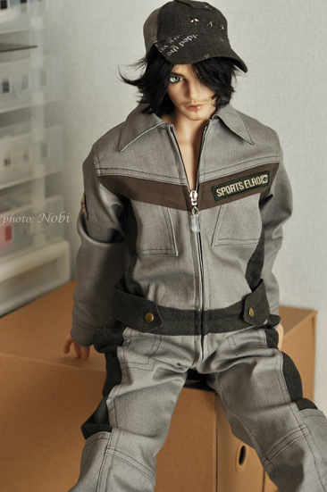カッコイイ着こなしが思いつかず、とりあえずツナギ♡を着せました。