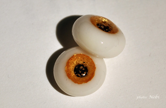 ちなみに 白眼部分(サーニット使用)にひっつき虫を密着させていた部分が薄いカラシ色に黄色くなっています